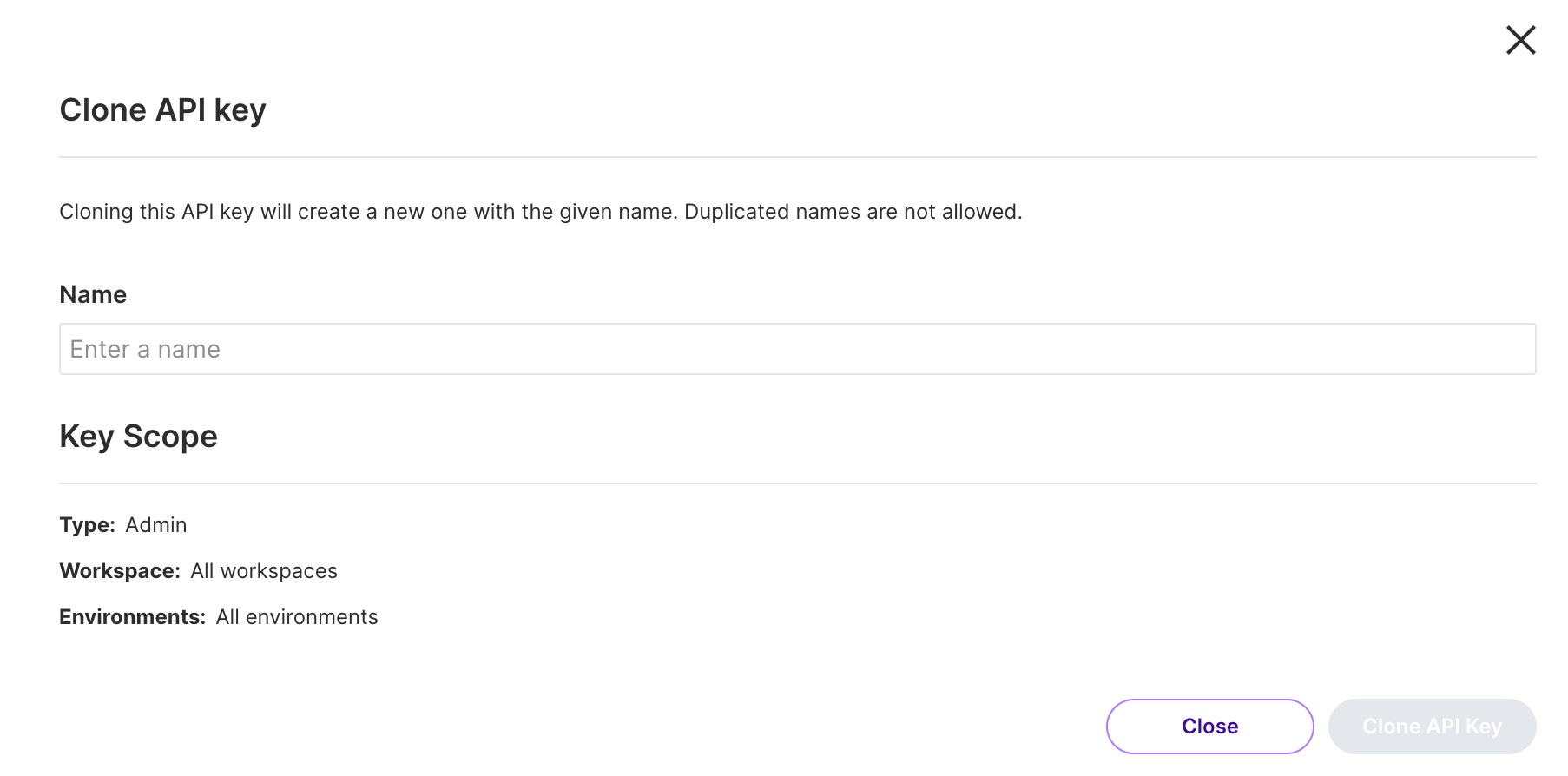 - Clone existing API keys