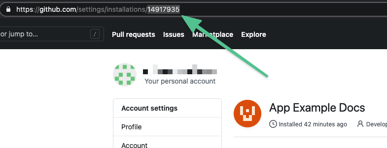 1. Get the Installation ID from the URL of the installed app, such as: