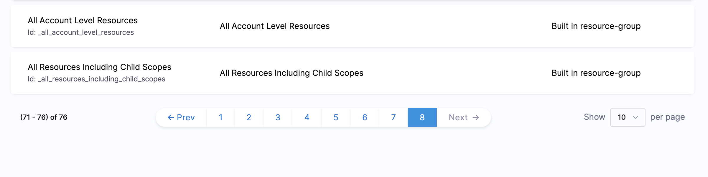 • Project Viewer - All Project Level Resources: This resource group defines the permissions for all resources in the project's scope. This is set for each project. If you have multiple projects, you have an All Project Level Resources for each project.