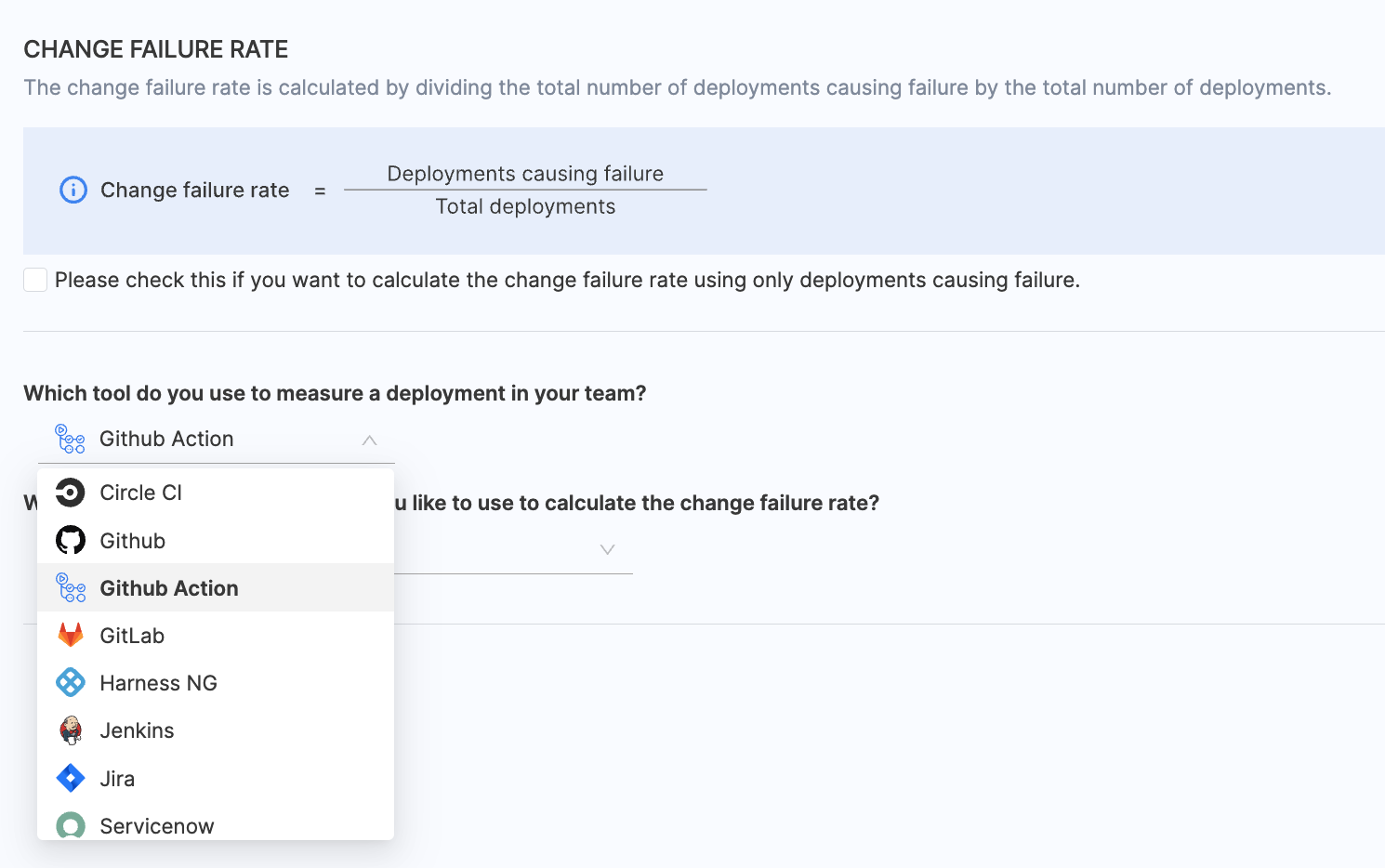 - Choose GitHub as the tool that you use to measure change failure rate in your team.