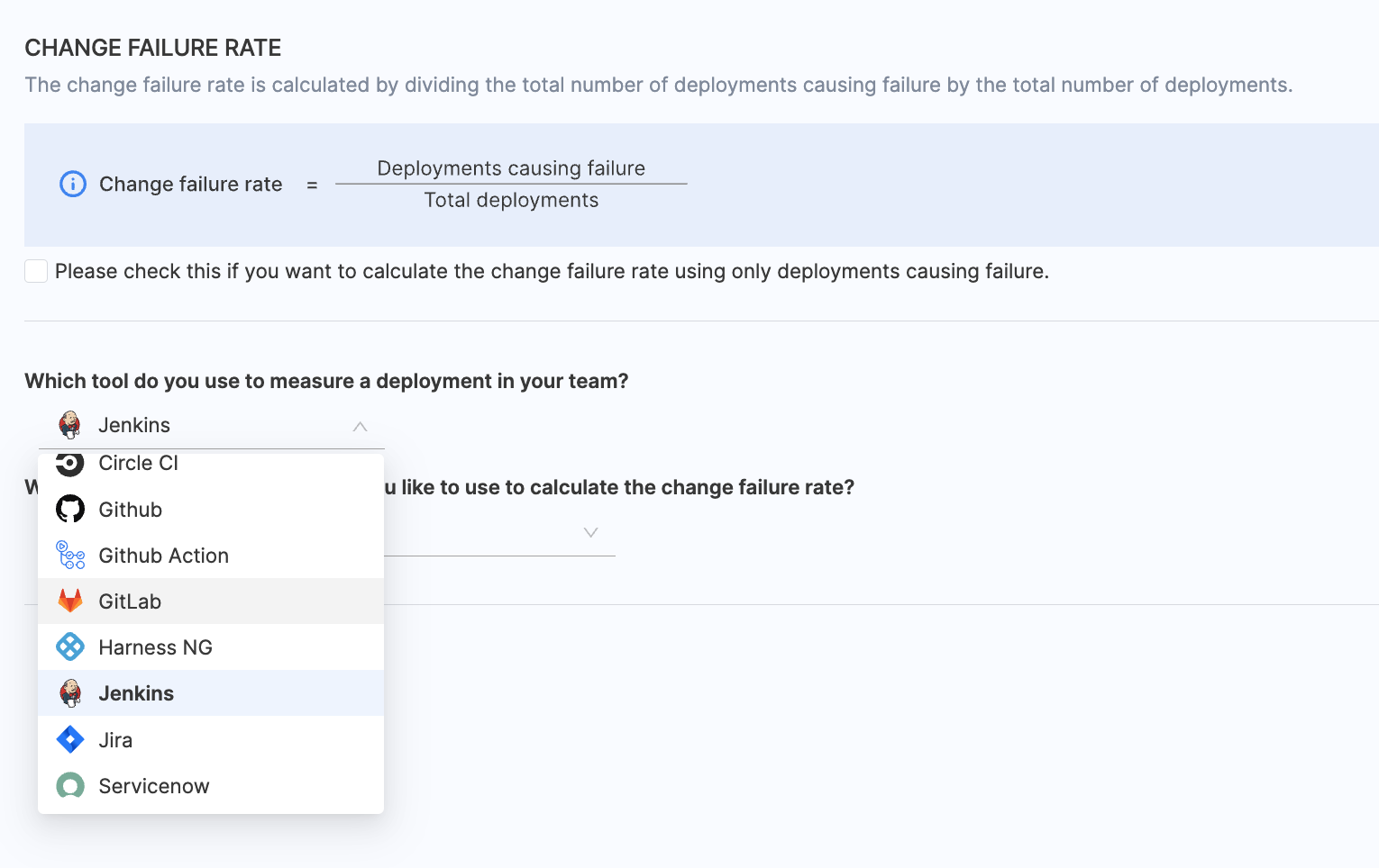 - Choose Jenkins as the tool that you use to measure change failure rate in your team.
