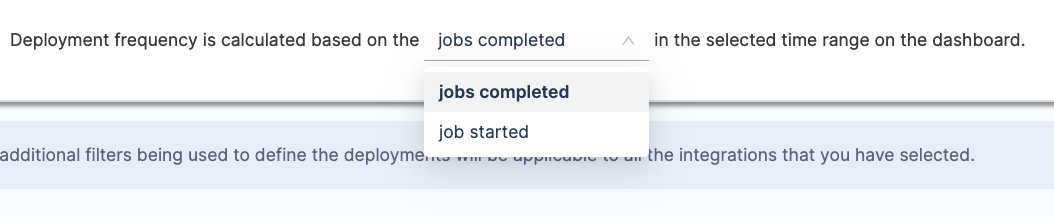 Similar to the deployments causing failure definition, you can configure the definition for measuring total deployments. This definition may align with the DORA Deployment Frequency definition. However, note that the total deployments are not linked with Deployment Frequency and are tracked separately for Change Failure Rate calculations.